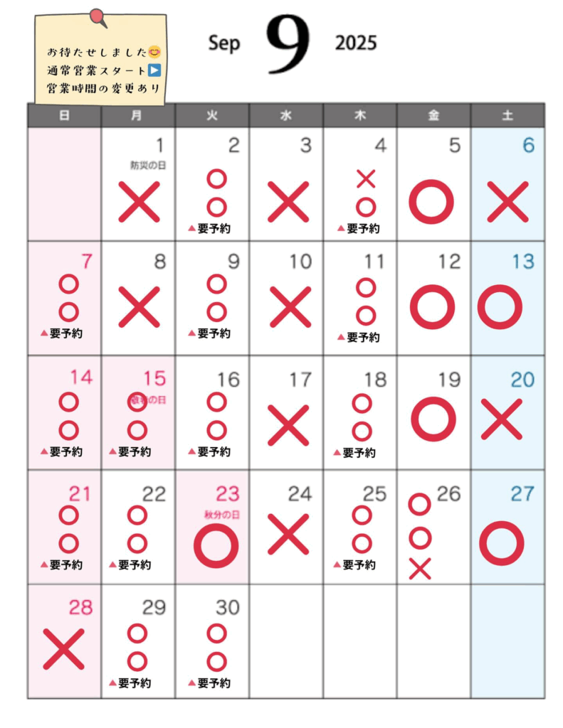 2025年9月の営業時間です📅